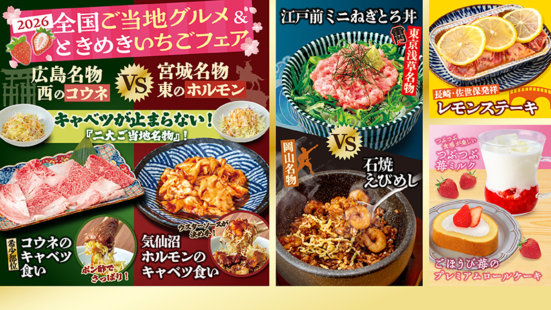 【焼肉どんどん亭】東西の“旨いもん”が岡山に集結!「2026全国ご当地グルメ&ときめきいちごフェア」3月9日(月)より開催!