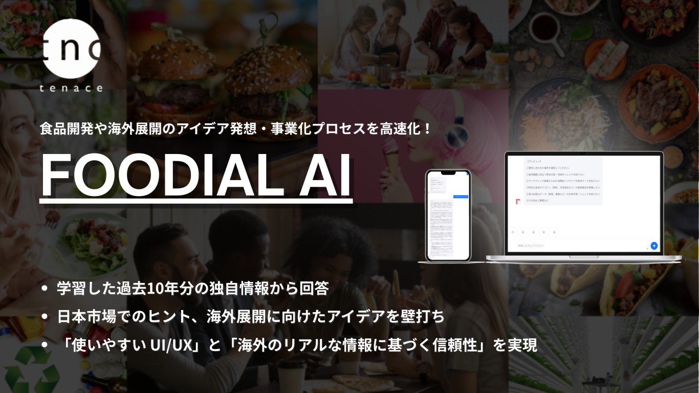 海外市場の現場で集めた食トレンド10年分を学習した食の特化型AI「FOODIAL AI」を正式ローンチ。生成AIでは辿り着けない具体性のある回答を商品開発のヒントに!