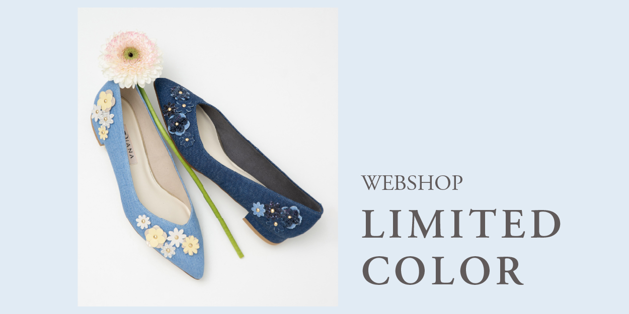 【ダイアナ】フラワーモチーフをあしらったフェミニンフラットパンプスにWEB限定カラーが登場!