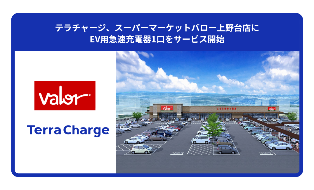 テラチャージ、スーパーマーケットバロー上野台店にEV用急速充電器1口をサービス開始