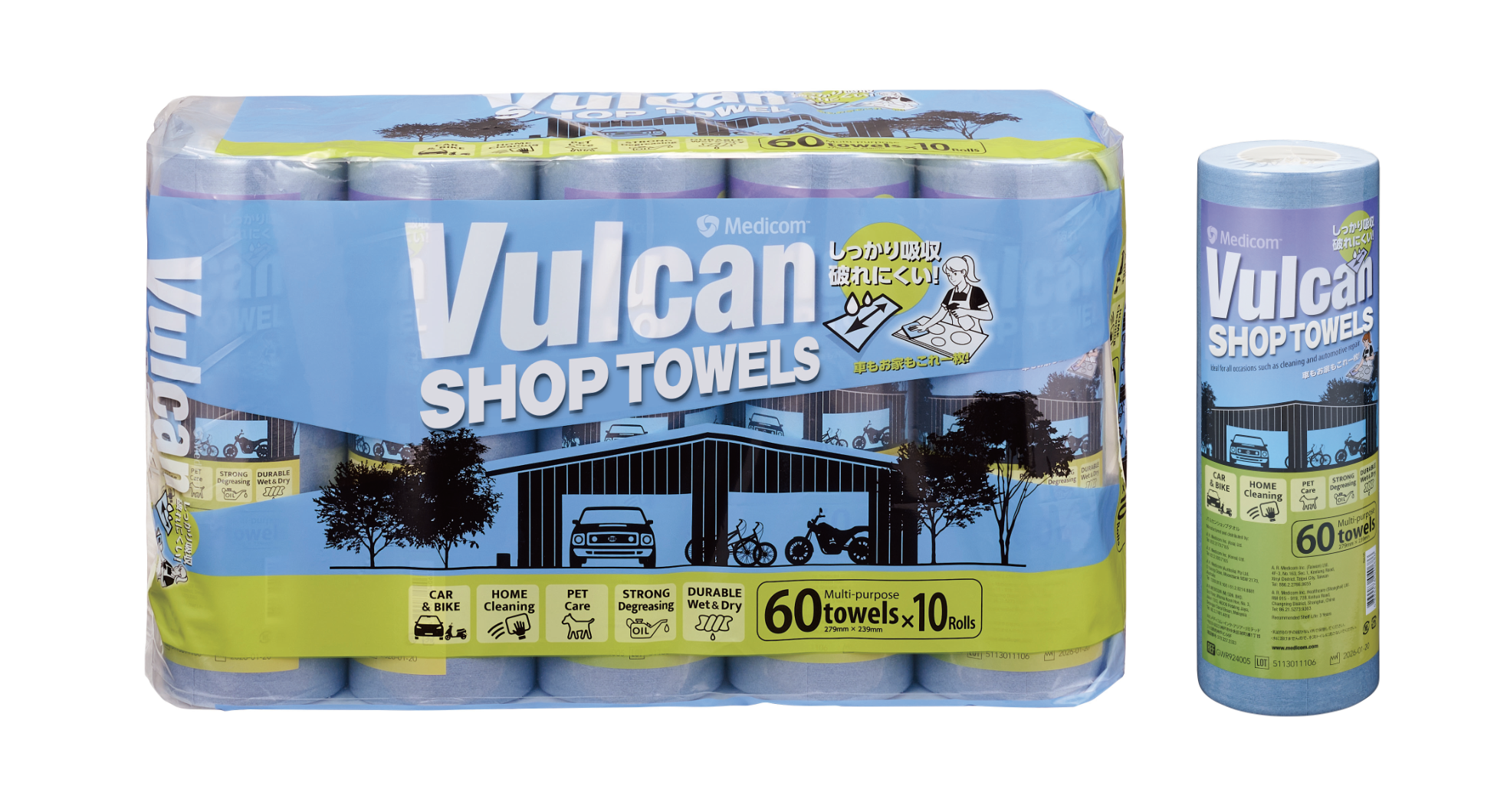 コストコで新発売(守山倉庫店・神戸倉庫店・久山倉庫店)!しっかり吸収・破れにくいペーパータオル「Vulcan ショップタオル 60枚」x10ロール