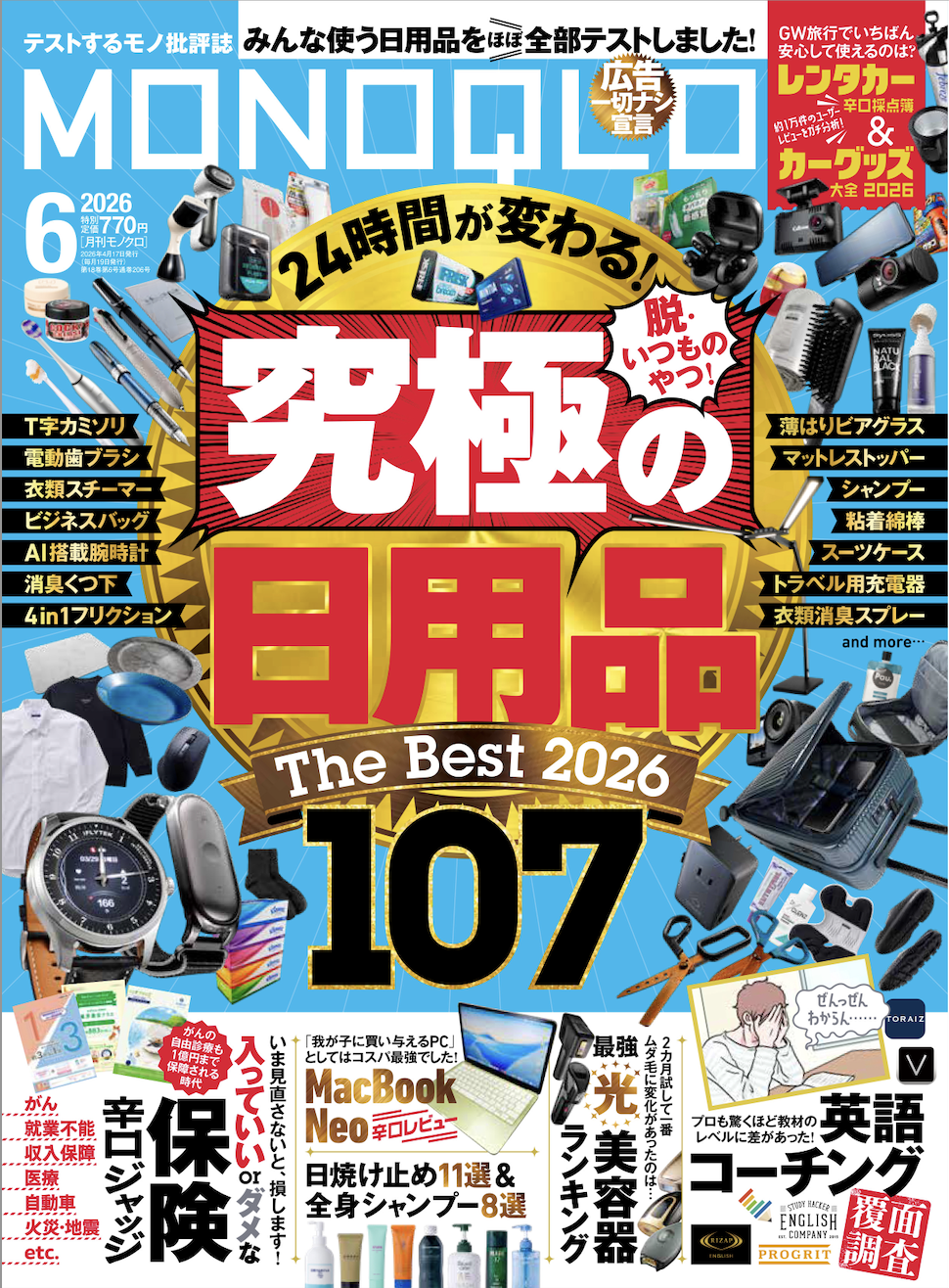 生活をガラリと変える「究極の日用品」を調査! 入っていいorダメな「保険」辛口ジャッジも見逃せない!!【MONOQLO6月号】