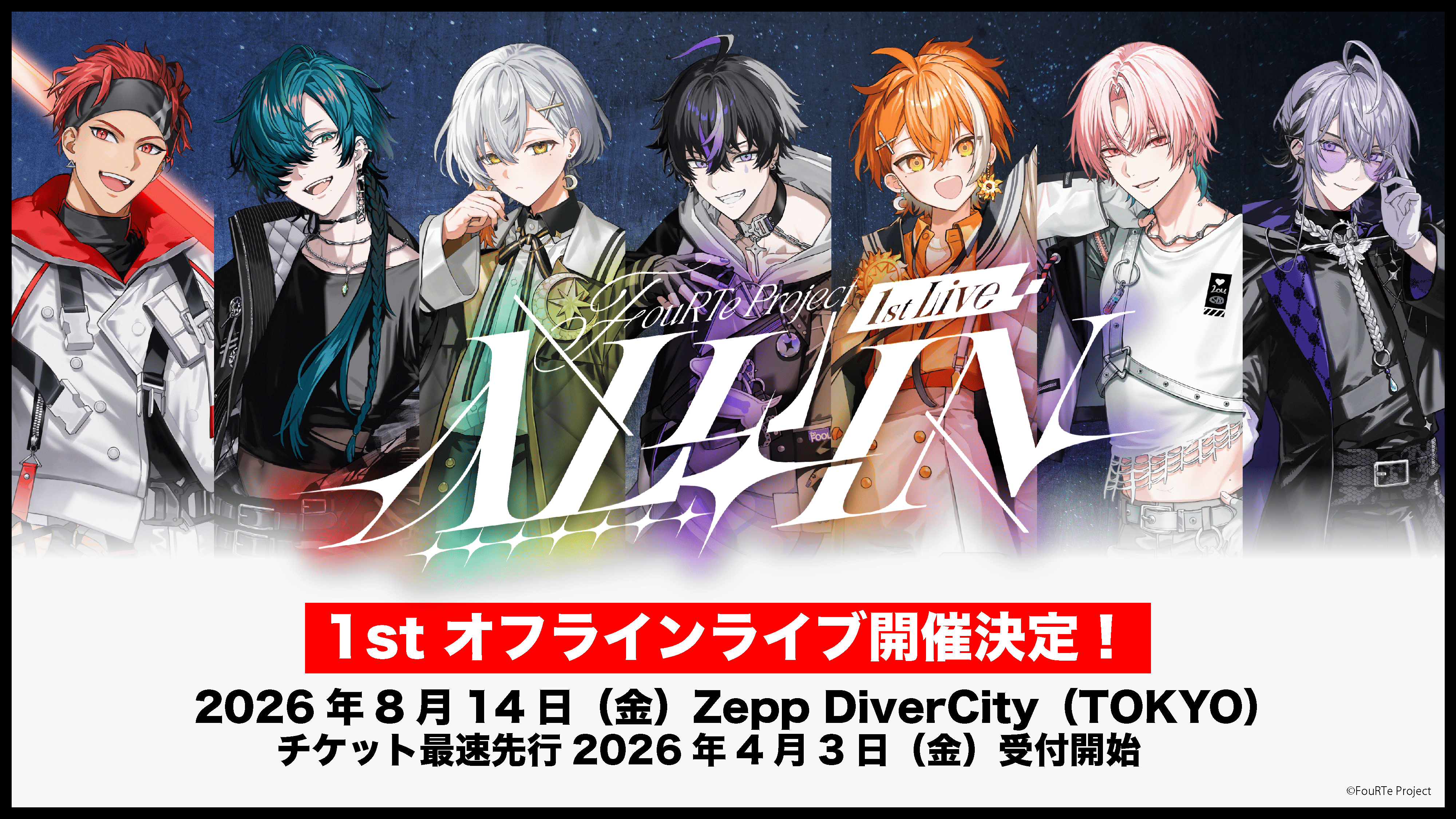 7人組バーチャルアイドルFouRTe Project初のオフラインライブ「FouRTe Project 1st LIVE "ALL IN"」第1弾情報解禁!