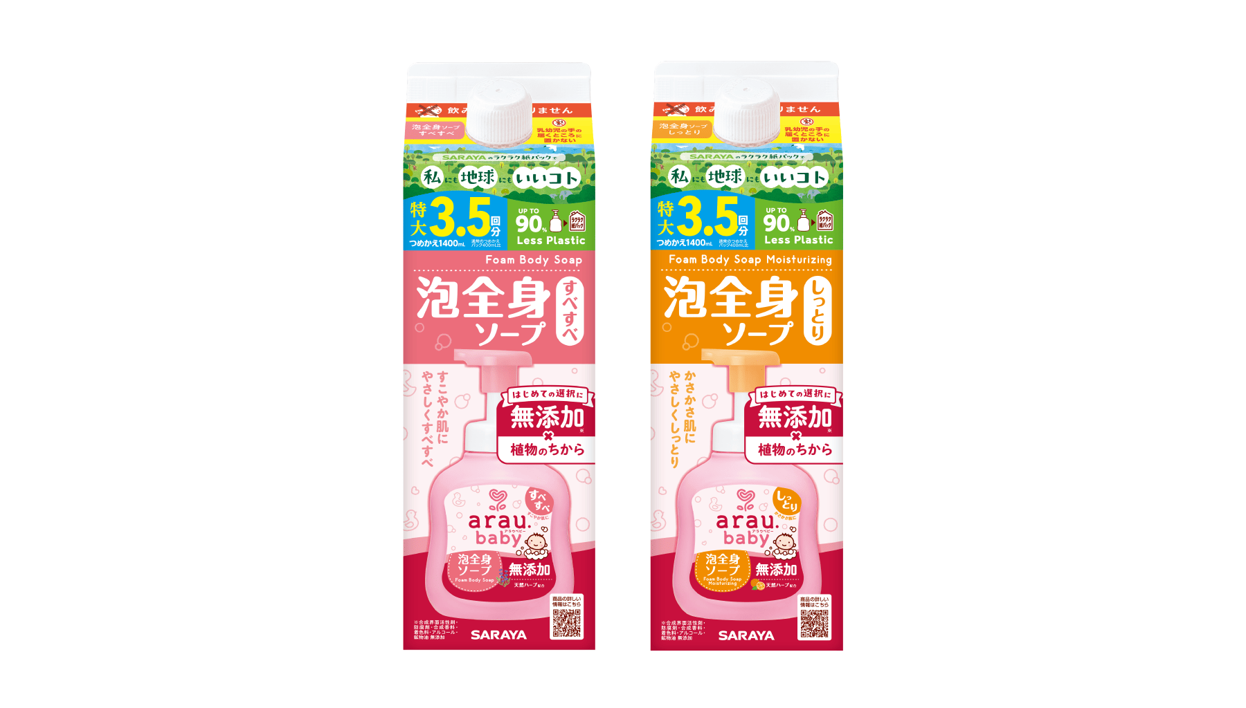 「アラウ.ベビー 泡全身ソープ」詰替大容量1400mL新発売紙パックタイプでプラスチック量の削減と使いやすさを追求