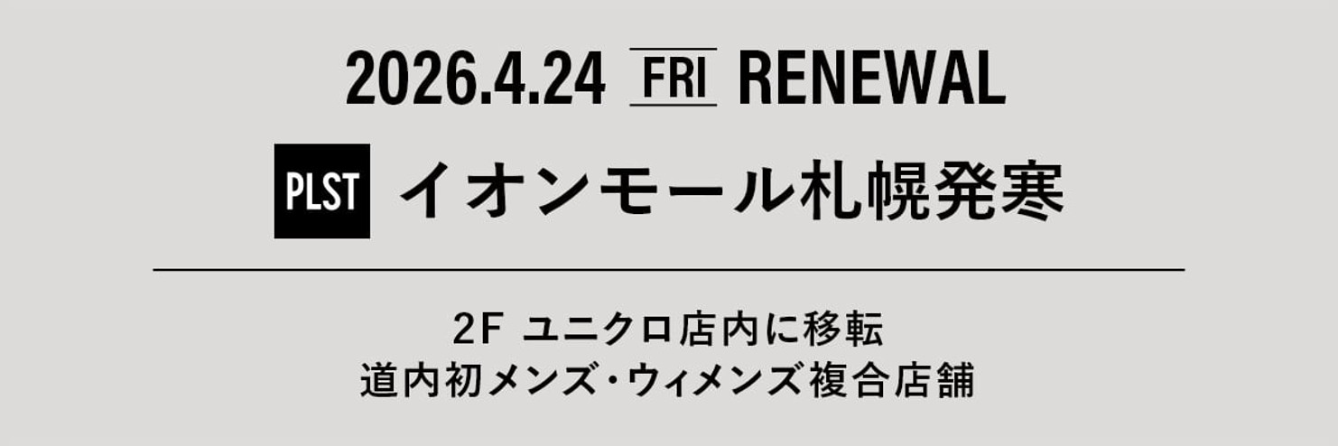 「プラステ イオンモール札幌発寒店」が、4月24日(金)に増床・移転オープン!北海道内唯一のメンズ取扱店舗として、2階ユニクロ店内に展開