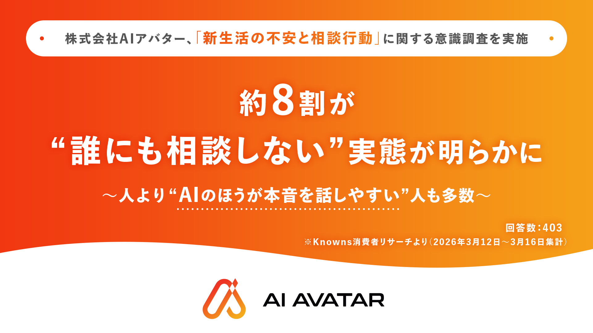 株式会社AIアバター、「新生活の不安と相談行動」に関する意識調査を実施約8割が“誰にも相談しない”実態が明らかに