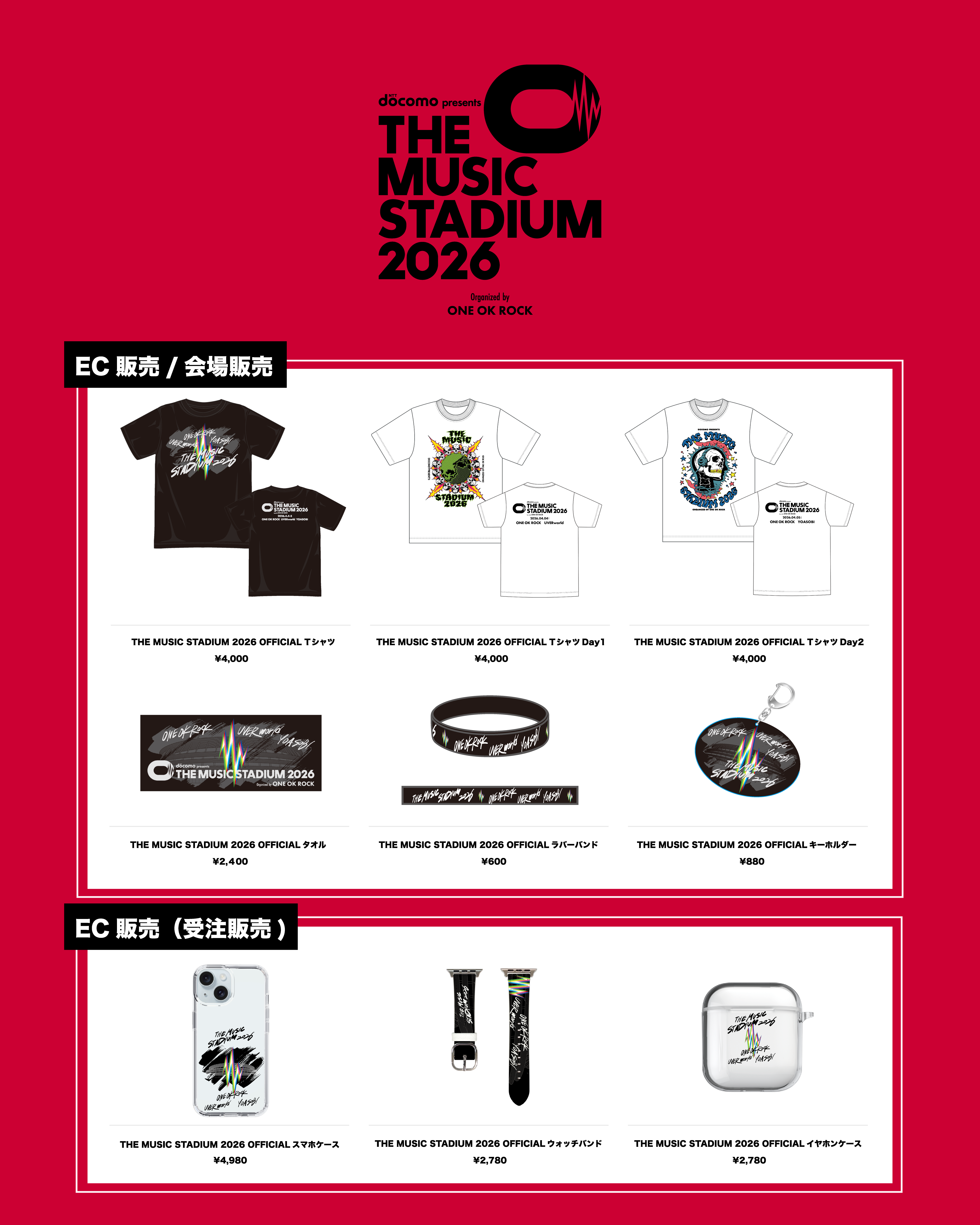 「docomo presents THE MUSIC STADIUM 2026 organized by ONE OK ROCK」オフィシャルグッズ事前販売開始