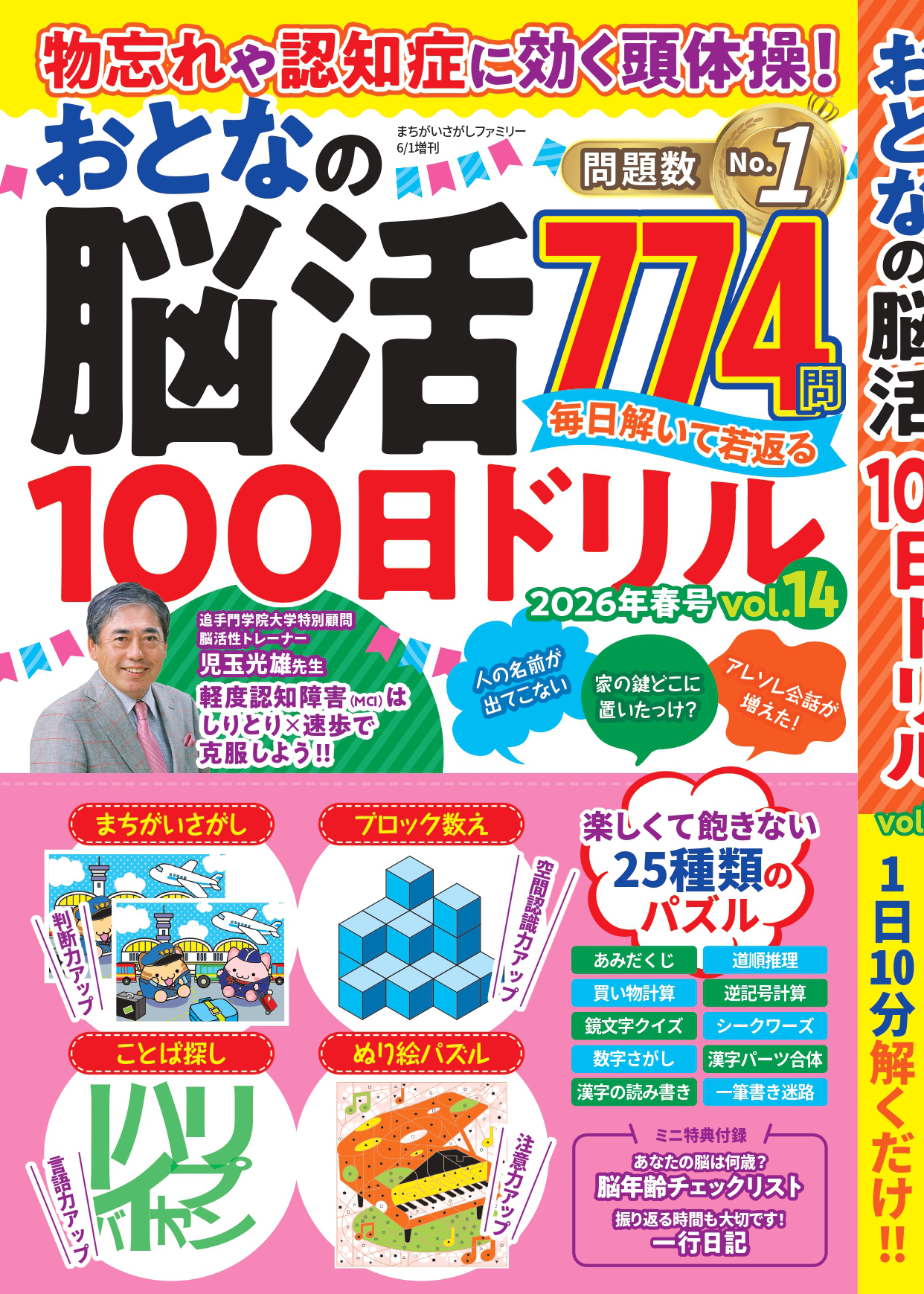 【問題数No.1】毎日楽しい脳トレ774問『物忘れや認知症に効く頭体操! おとなの脳活100日ドリル』 第14弾は4/20発売