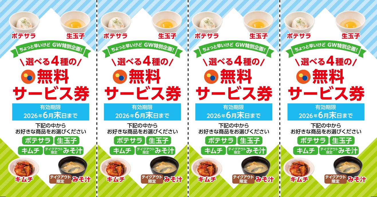 【松屋】初夏の陽気に誘われて 松屋へ行こう! お得な「サイドメニュー1品無料サービス券」配布開始