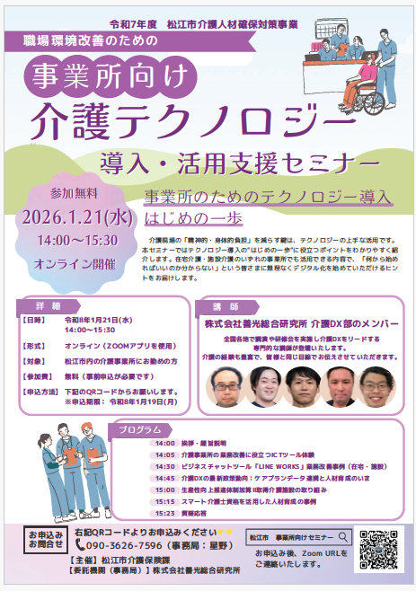 松江市主催「介護テクノロジー導入・活用支援セミナー」へ登壇します