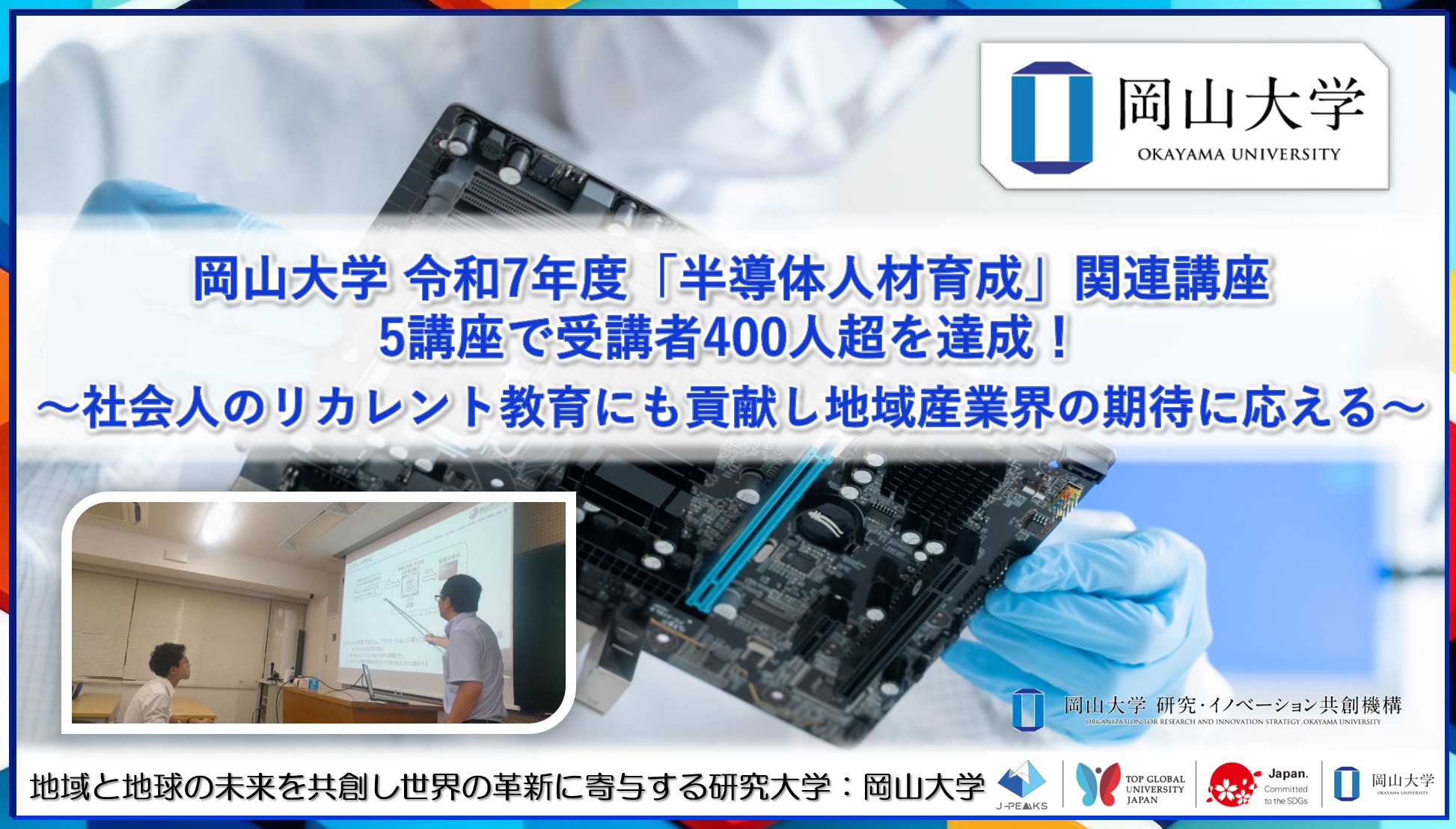【岡山大学】令和7年度「半導体人材育成」関連講座 5講座で受講者400人超を達成!~社会人のリカレント教育にも貢献し地域産業界の期待に応える~