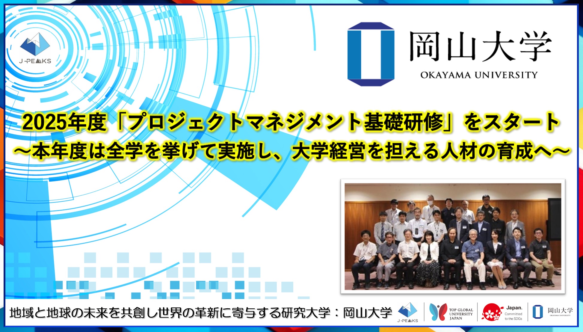 【岡山大学】2025年度「プロジェクトマネジメント基礎研修」をスタート~本年度は全学を挙げて実施し、大学経営を担える人材の育成へ~