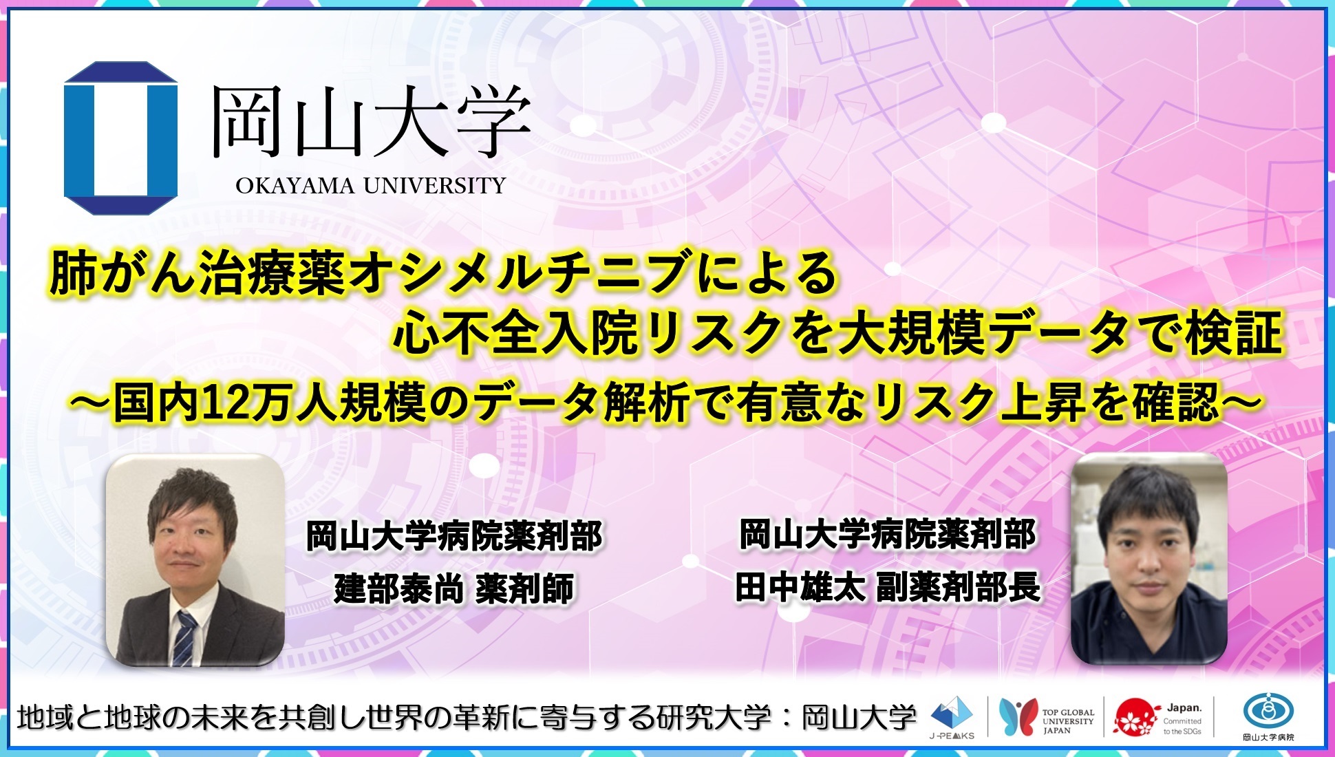 【岡山大学】肺がん治療薬オシメルチニブによる心不全入院リスクを大規模データで検証~国内12万人規模のデータ解析で有意なリスク上昇を確認~