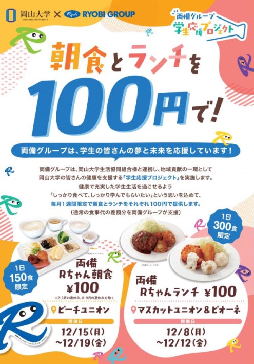 【岡山大学】両備グループ・岡山大学・岡山大学生協による「学生応援プロジェクト」を開始!