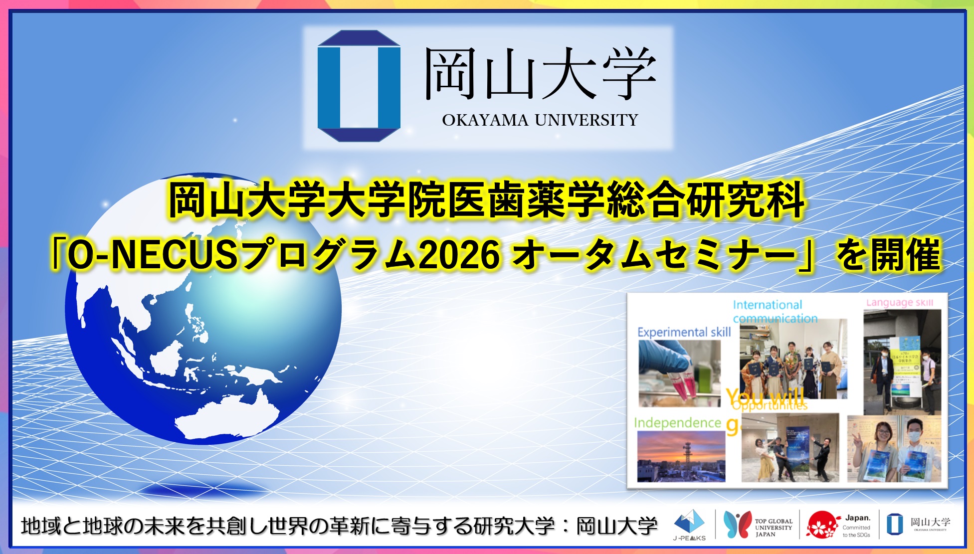 【岡山大学】岡山大学大学院医歯薬学総合研究科「O-NECUSプログラム2026 オータムセミナー」を開催