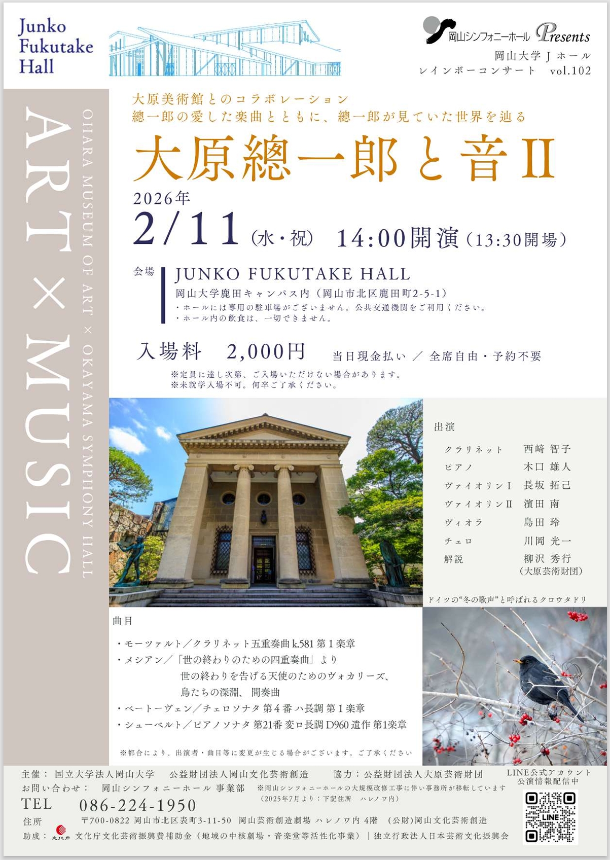 【岡山大学】レインボーコンサート vol.102「大原總一郎と音II~大原美術館とのコラボレーション~」〔2/11,水・祝 岡山大学鹿田キャンパス〕