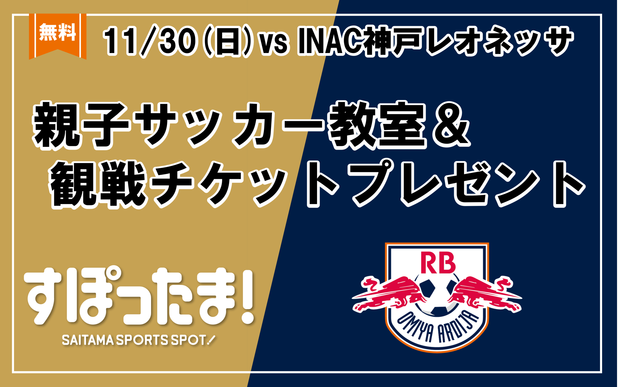 【埼玉県】埼玉県×RB大宮アルディージャWOMEN試合観戦チケット付き親子サッカー教室参加者募集!