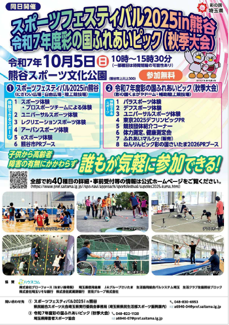 【埼玉県】「スポーツフェスティバル2025in熊谷」「令和7年度彩の国ふれあいピック(秋季大会)」の参加者事前受付を開始!