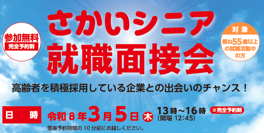 さかいシニア就職面接会を開催します(3/5)