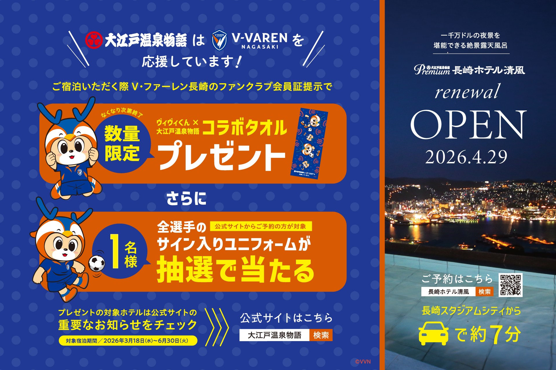 大江戸温泉物語グループ×V・ファーレン長崎!オリジナルコラボタオル&サイン入りユニフォームプレゼントキャンペーン!(PR TIMES 健康・スポーツ)
