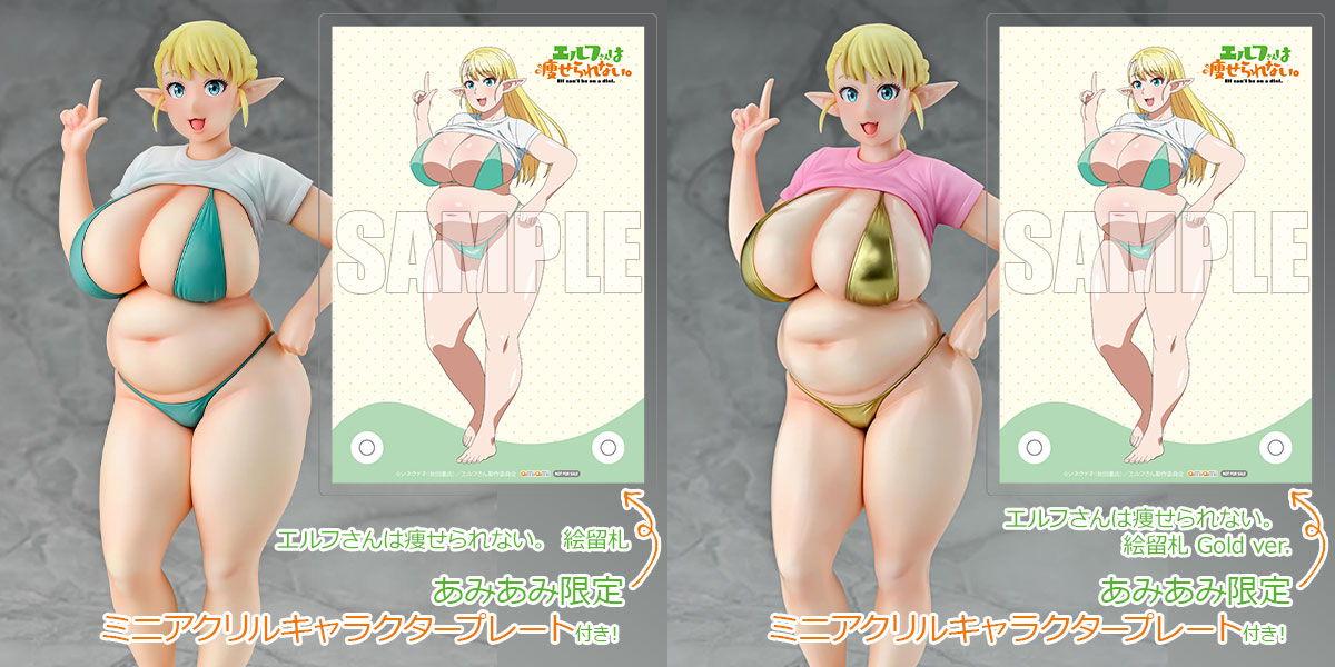 『エルフさんは痩せられない。』より、ぽっちゃりエルフ「絵留札(えるふだ)」がフィギュア化。金ビキニでより艶やかな仕上がりのGold ver.も登場。