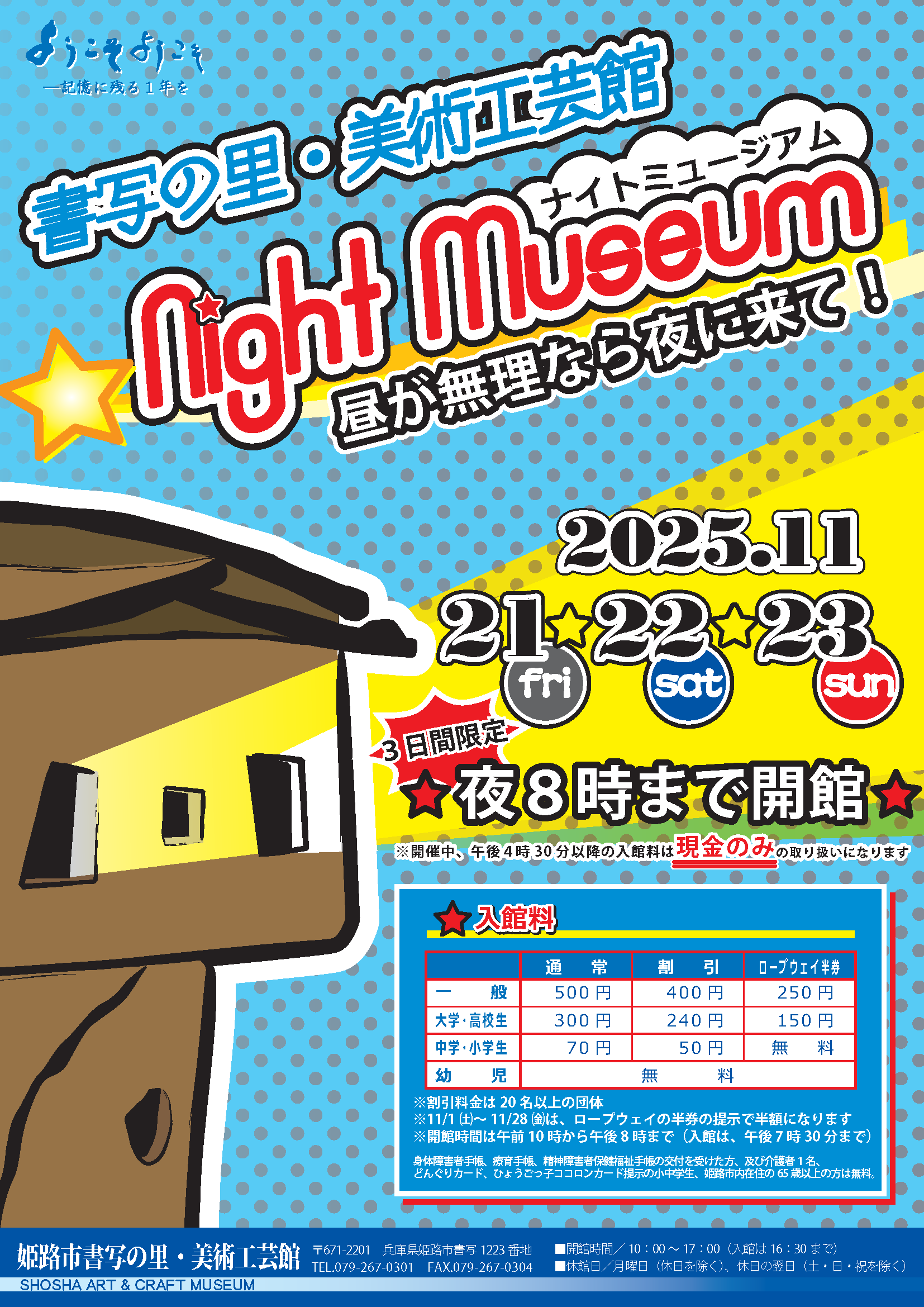 「書写の里・美術工芸館ナイトミュージアム」を開催します。