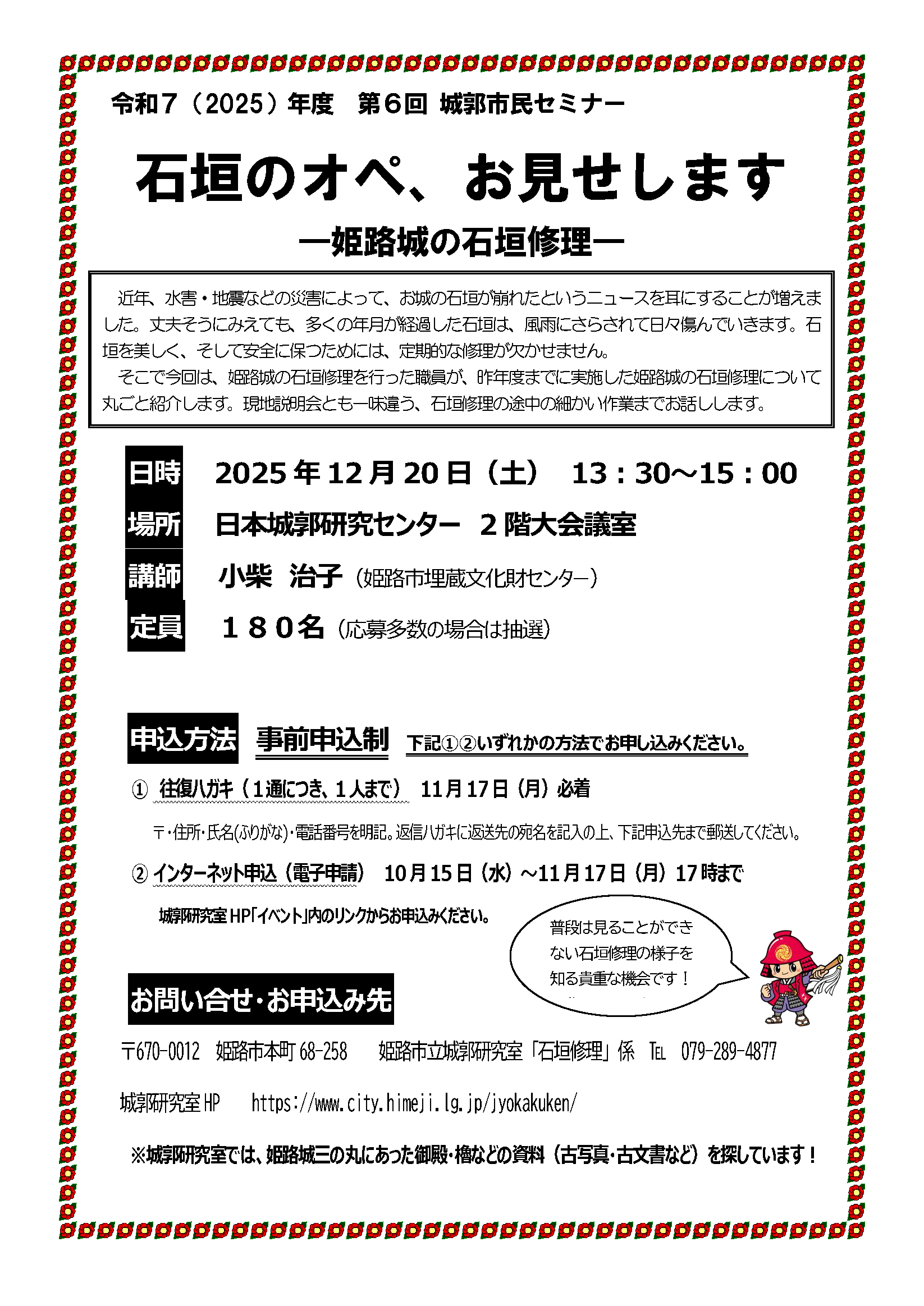 第6回 城郭市民セミナー「石垣のオペ、お見せします-姫路城の石垣修理-」