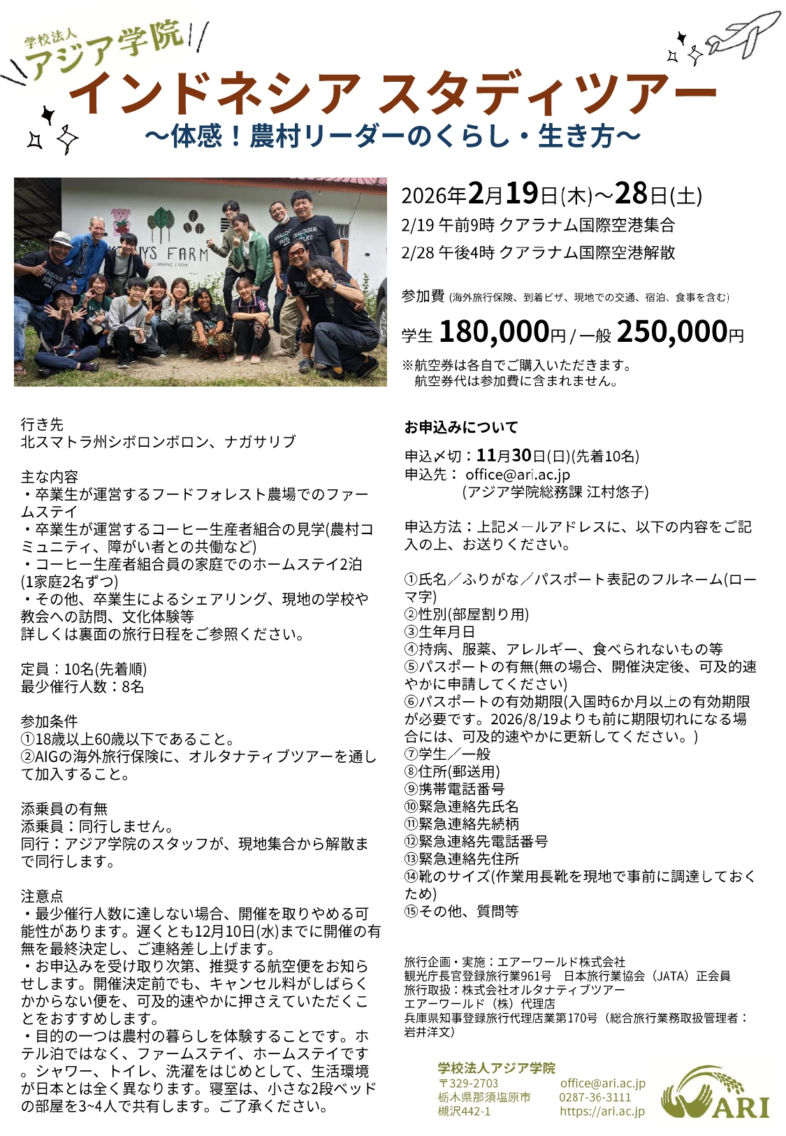 アジア学院インドネシアスタディツアー2026~体感!農村リーダーのくらし・生き方~