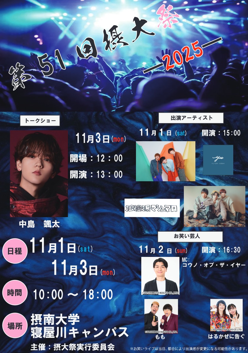 【摂南大学】学園祭 昨年過去最多の1万人が来場した熱気を再び 11月1日~3日「摂大祭」「摂友祭」を開催