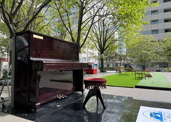 明大生による「ストリートピアノ×コーヒーカフェ」イベント