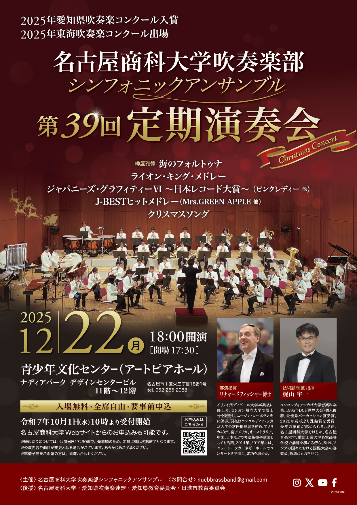 名古屋商科大学吹奏楽部シンフォニックアンサンブル第39回定期演奏会 ~Christmas Concert~ を12月22日(月)に開催
