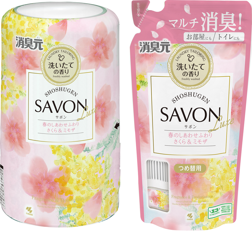 春を象徴する2つの花が織りなす「消臭元SAVON Luxe春のしあわせふわり さくら&ミモザ」