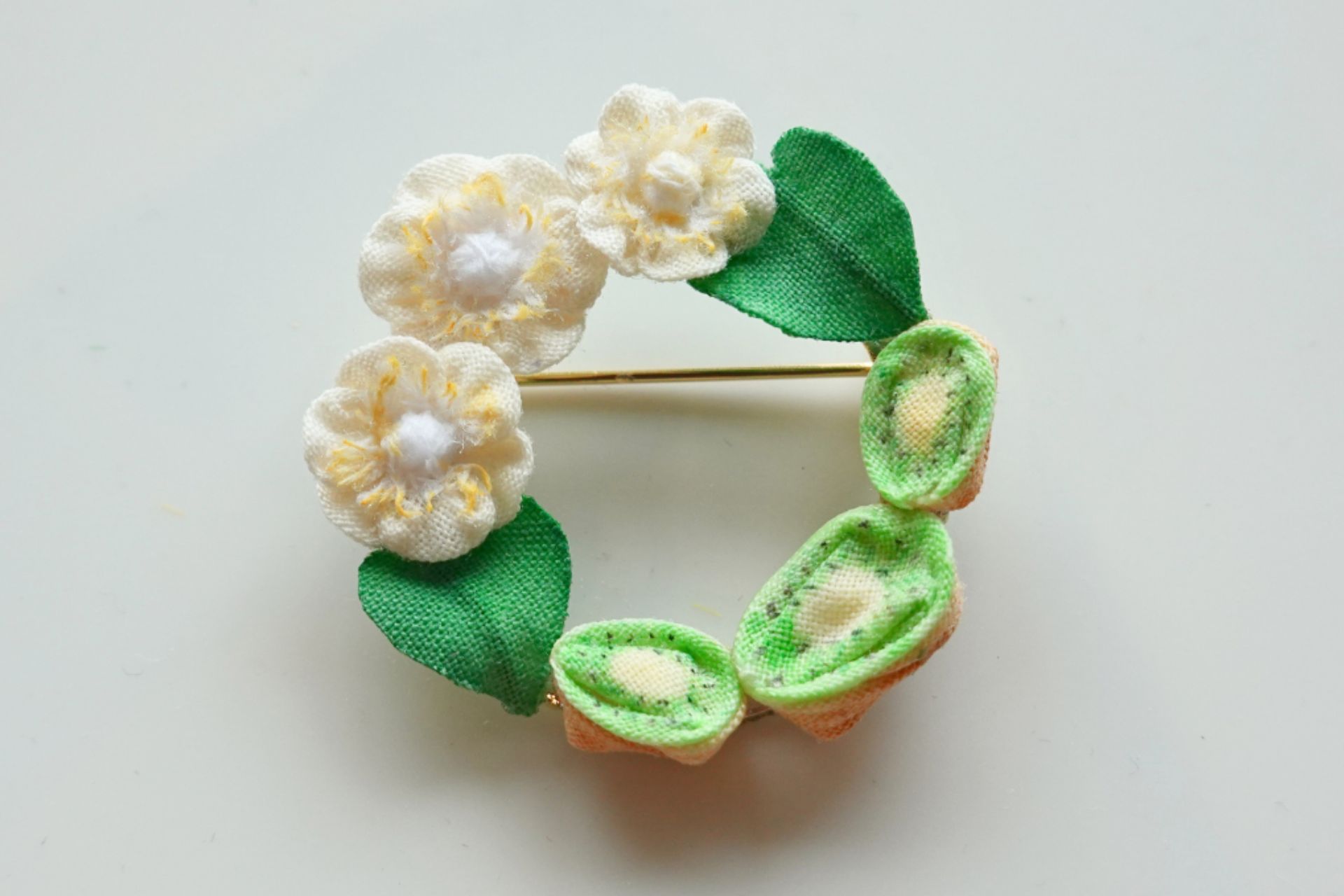 【岐阜県関市ふるさと納税】関市の特産品「ほらどキウイ」をモチーフにしたつまみ細工のブローチが登場!