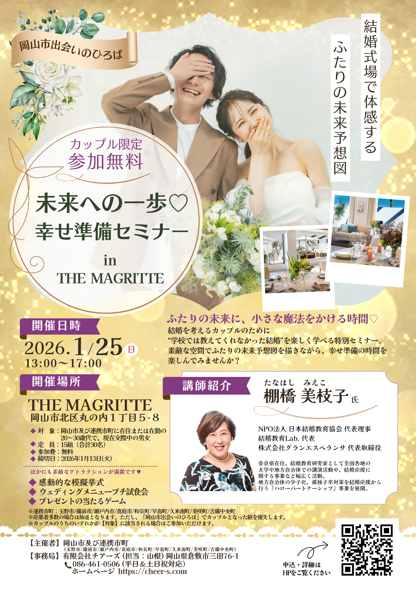 【岡山市出会いのひろば】参加者募集中!“未来への一歩(ハート)幸せ準備セミナー in THE MAGRITTE” 1月25日(日)開催(PR TIMES トレンド)