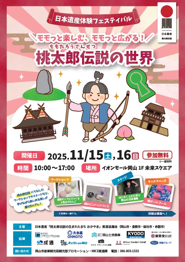 【日本遺産「桃太郎伝説の生まれたまち おかやま」推進協議会】日本遺産体験フェスティバル「モモっと楽しむ、モモっと広がる!桃太郎伝説の世界」を開催!(PR TIMES ママ)