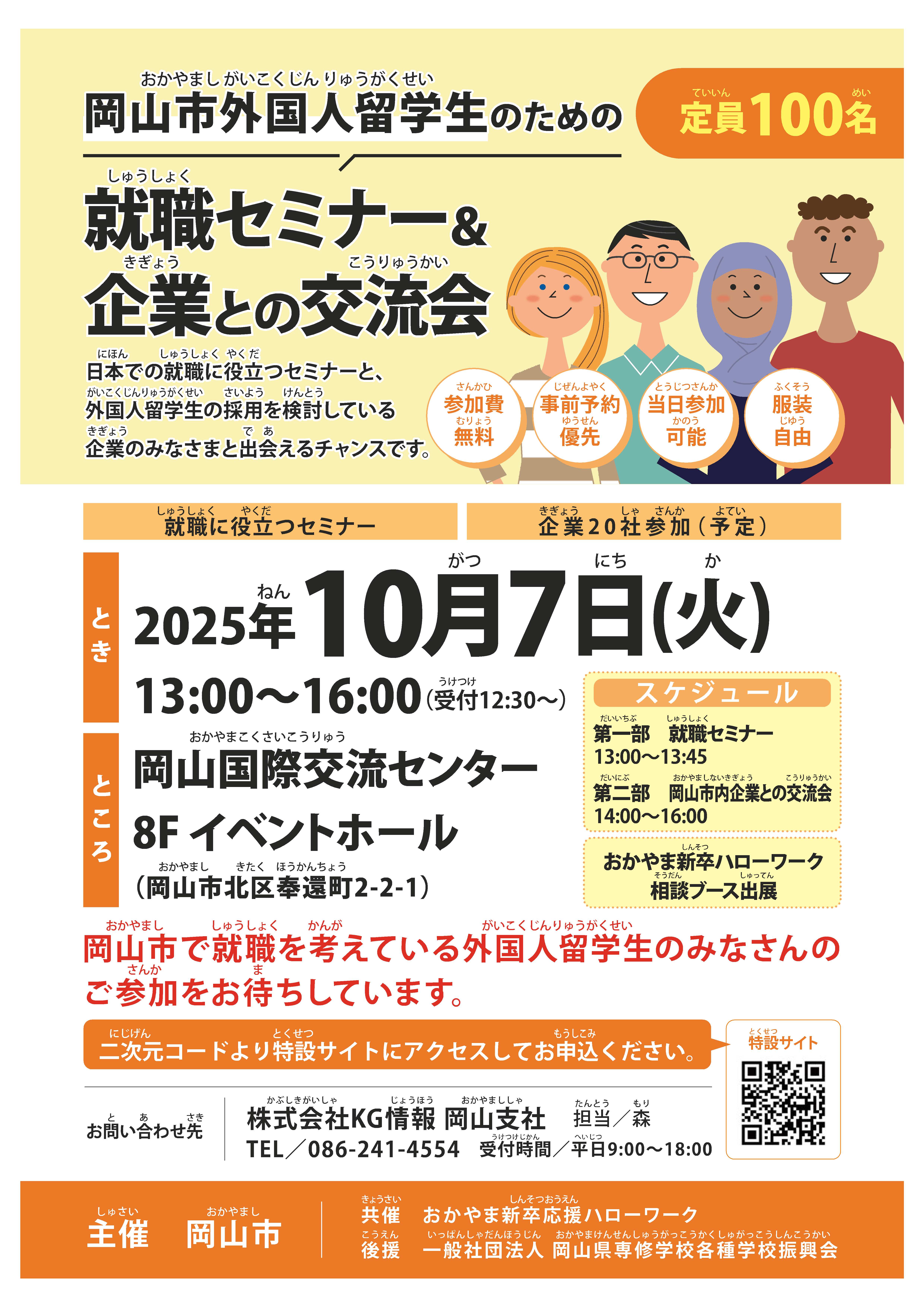 外国人留学生の岡山での就職を支援するため、外国人材の採用意欲が高い市内企業と外国人留学生の交流会を開催します。