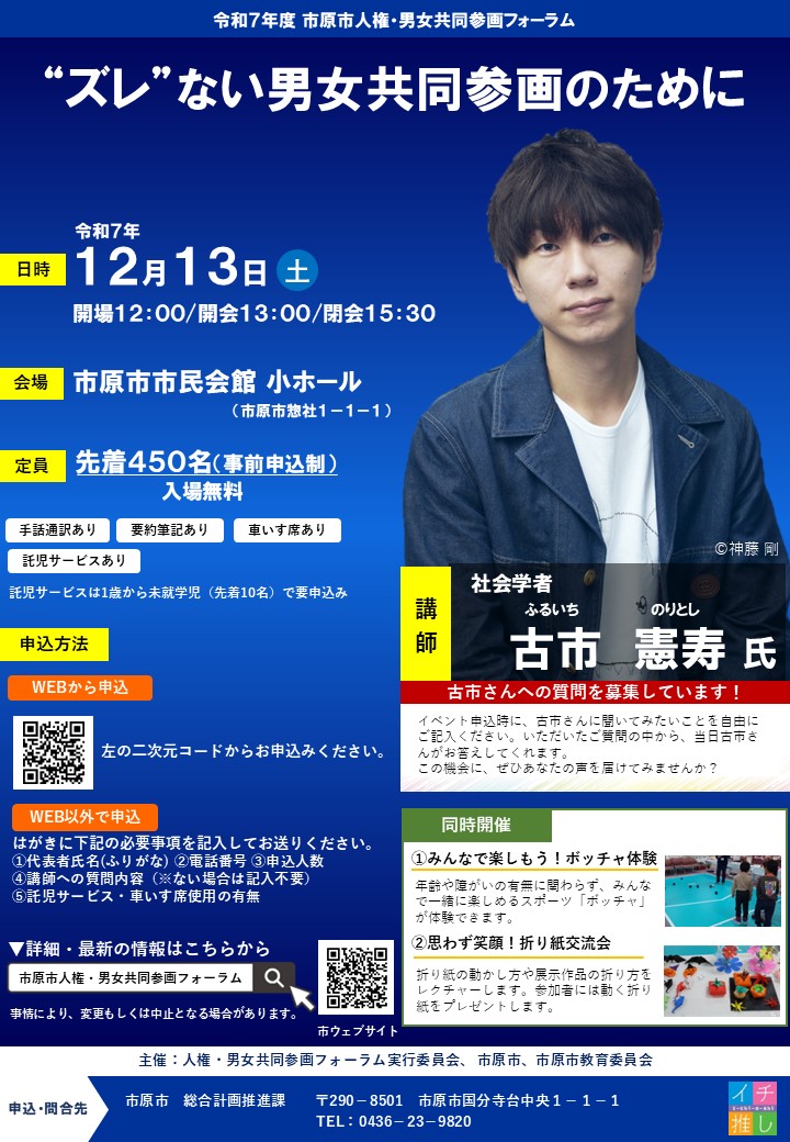 【千葉県市原市】古市憲寿氏登壇「“ズレ”ない男女共同参画のために」市原市人権・男女共同参画フォーラム開催