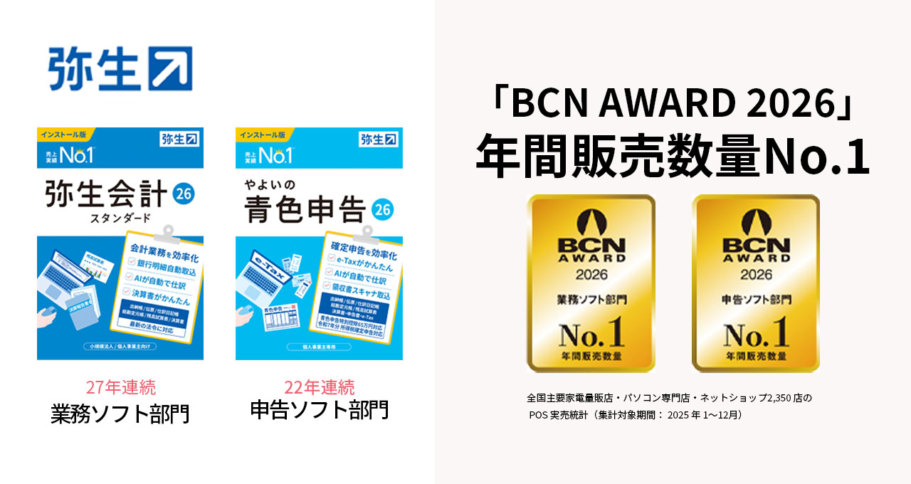 「BCN AWARD 2026」において 「弥生シリーズ」のデスクトップソフトが27年連続年間販売数量No.1を達成