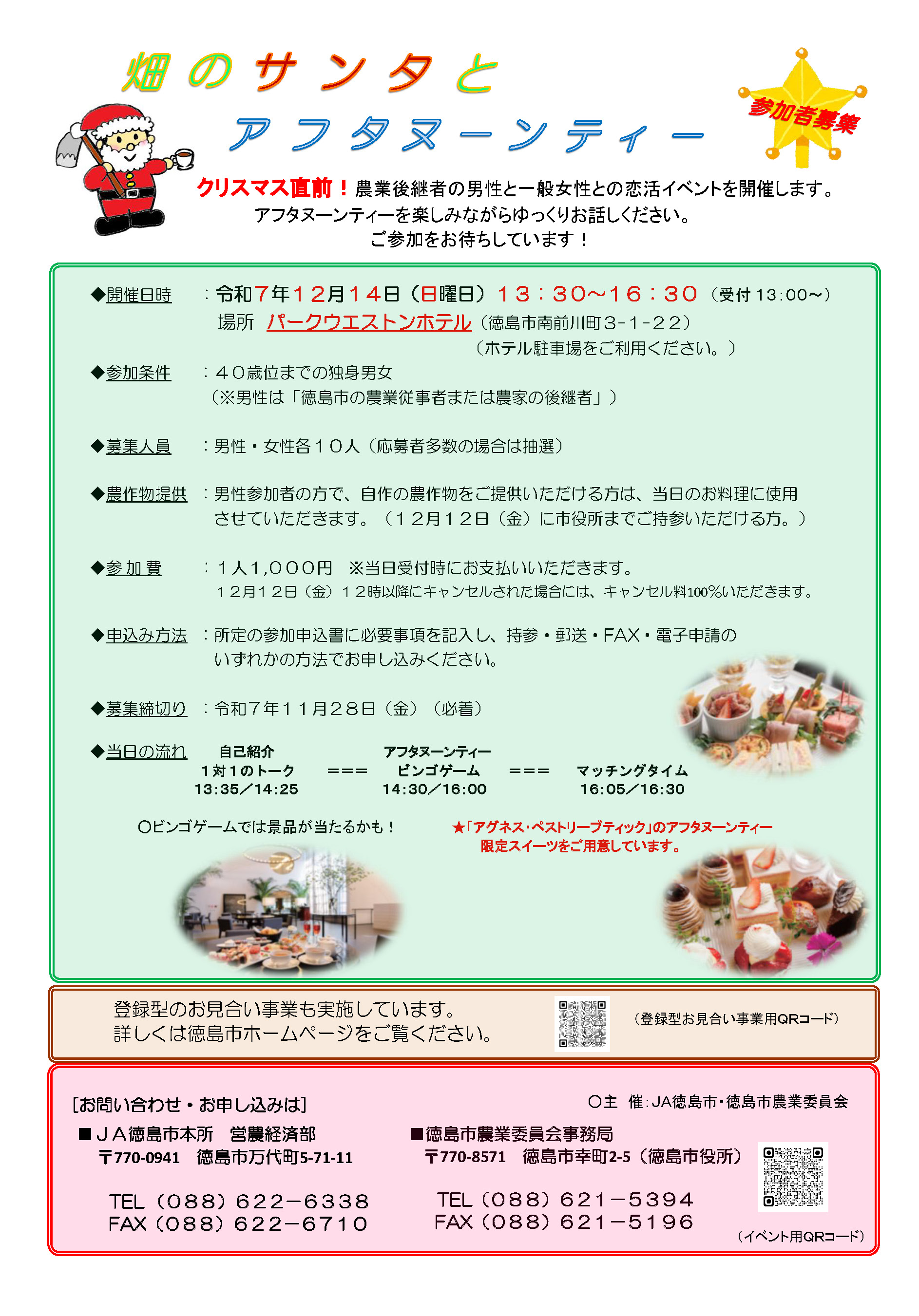 【徳島市】恋活イベント「畑のサンタとアフタヌーンティー」 を開催します
