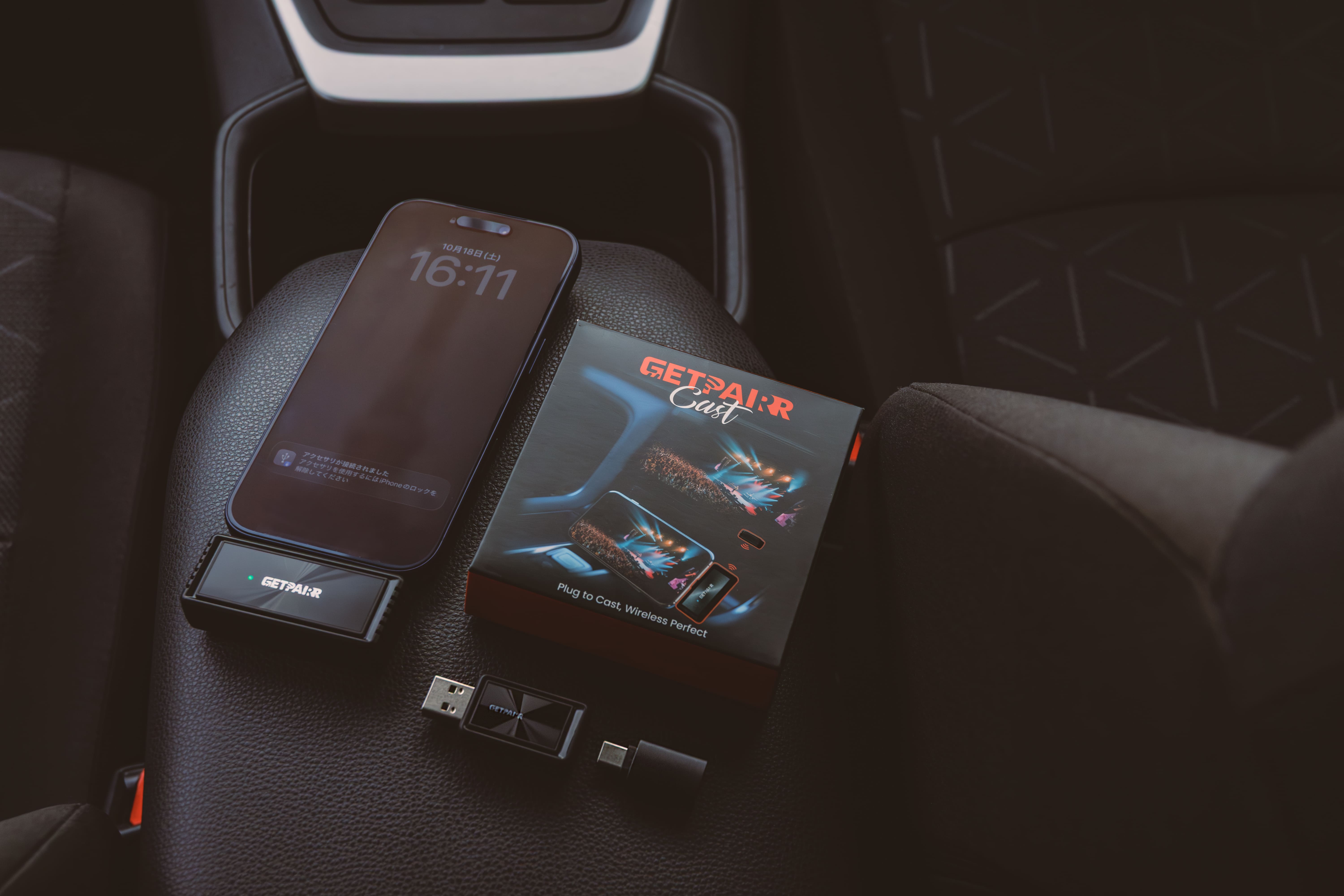 出発前はもっとスムーズに、待ち時間はもっと自由に。Wireless CarPlayとワイヤレス画面投影を1台にした GetPairr Mirror Cast、24%OFF+クーポン併用で1万円台に