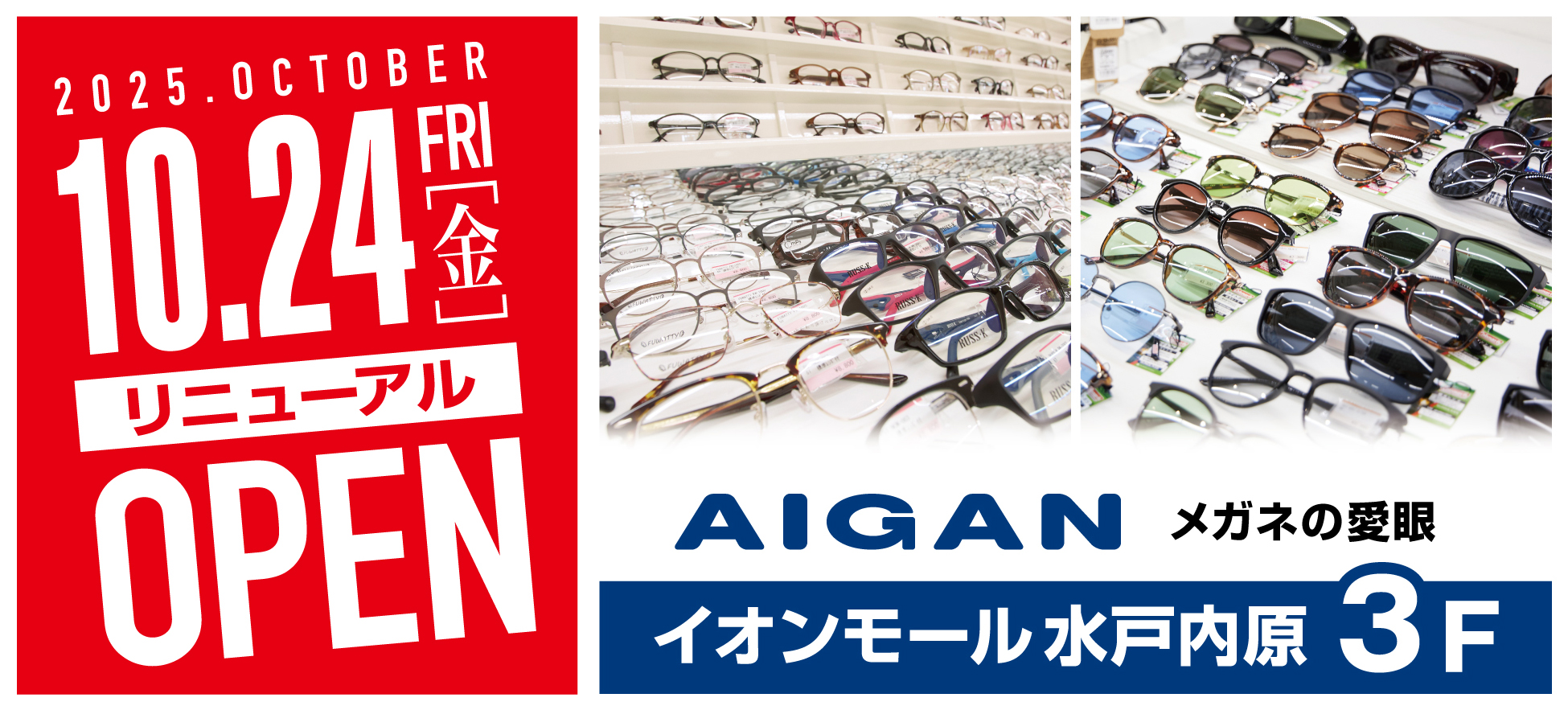 【2025年10月24日(金)イオンモール水戸内原店の愛眼がリニューアルOPEN】「メガネの愛眼 イオンモール水戸内原店」