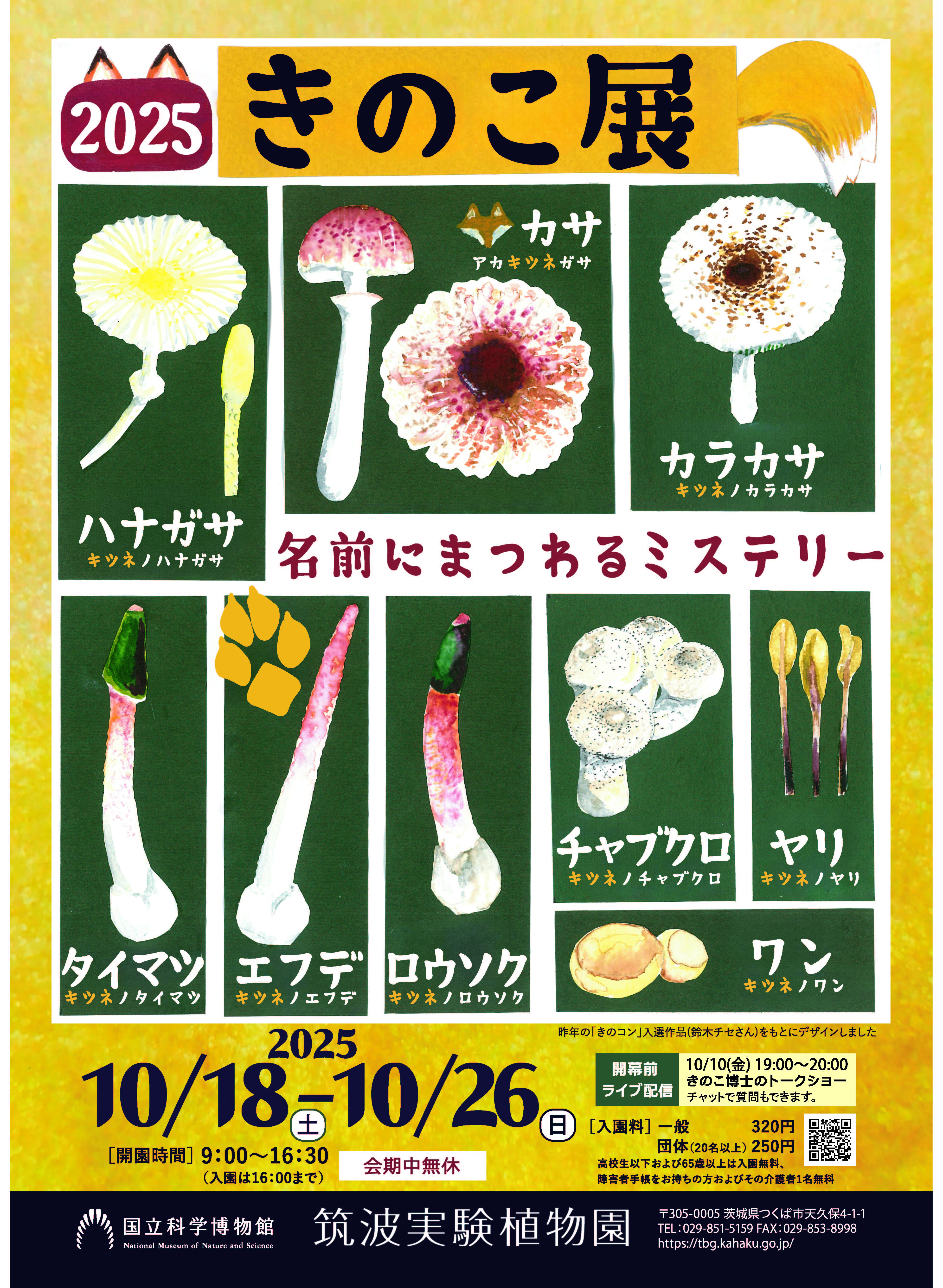 【国立科学博物館 筑波実験植物園】企画展「きのこ展 ~名前にまつわるミステリー~」開催のご案内