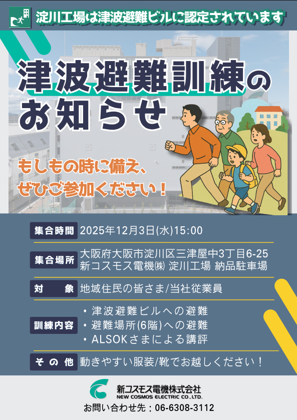 新コスモス電機 地域住民参加の津波避難訓練を初開催しました