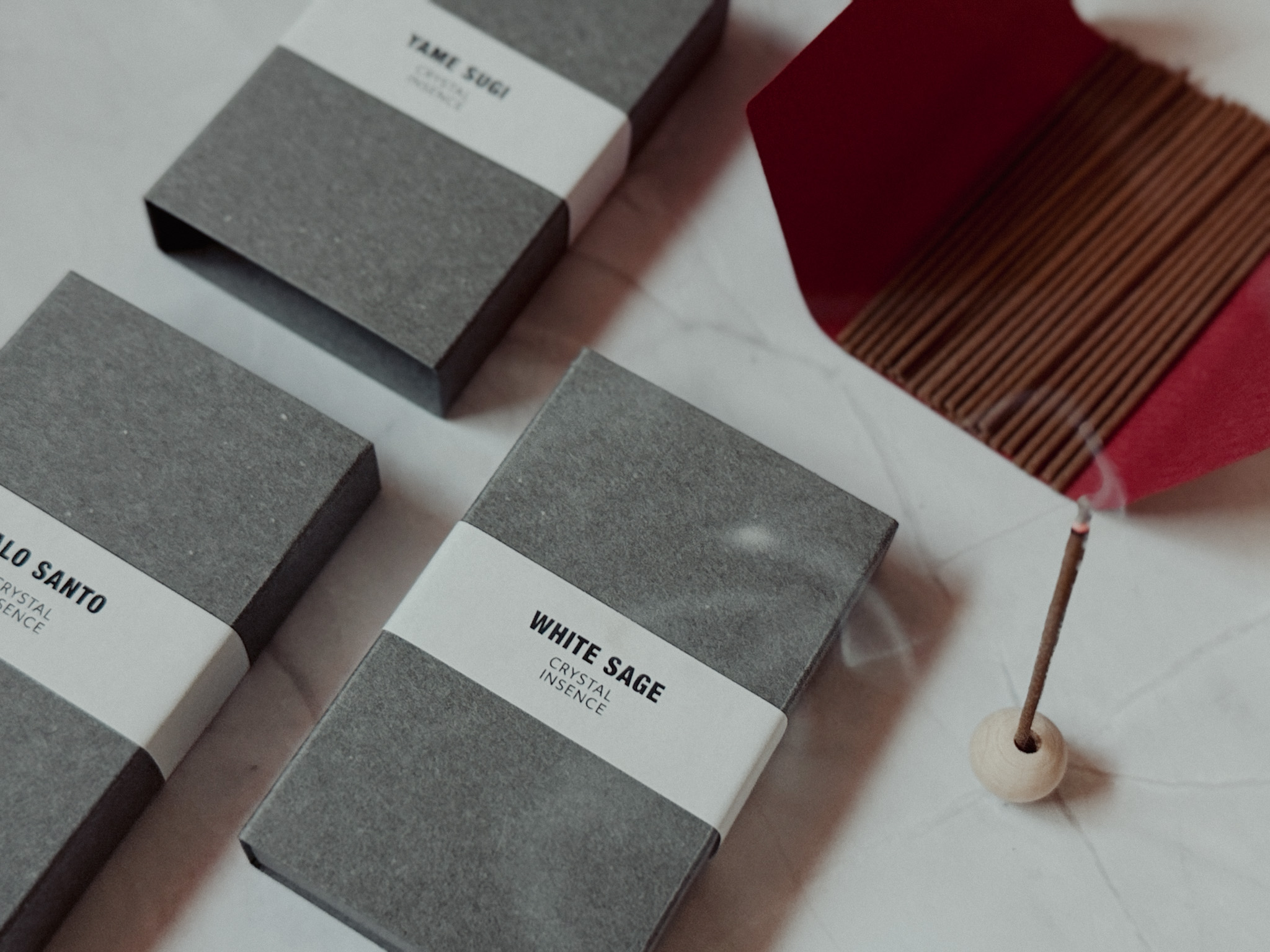 国産・無添加クリスタルインセンス、「お香3種アソート」が再入荷── 今日の気分で香りを選ぶ、新しいセルフケアのかたち。パロサント・ホワイトセージ・八女杉の3種×天然木スタンド付き