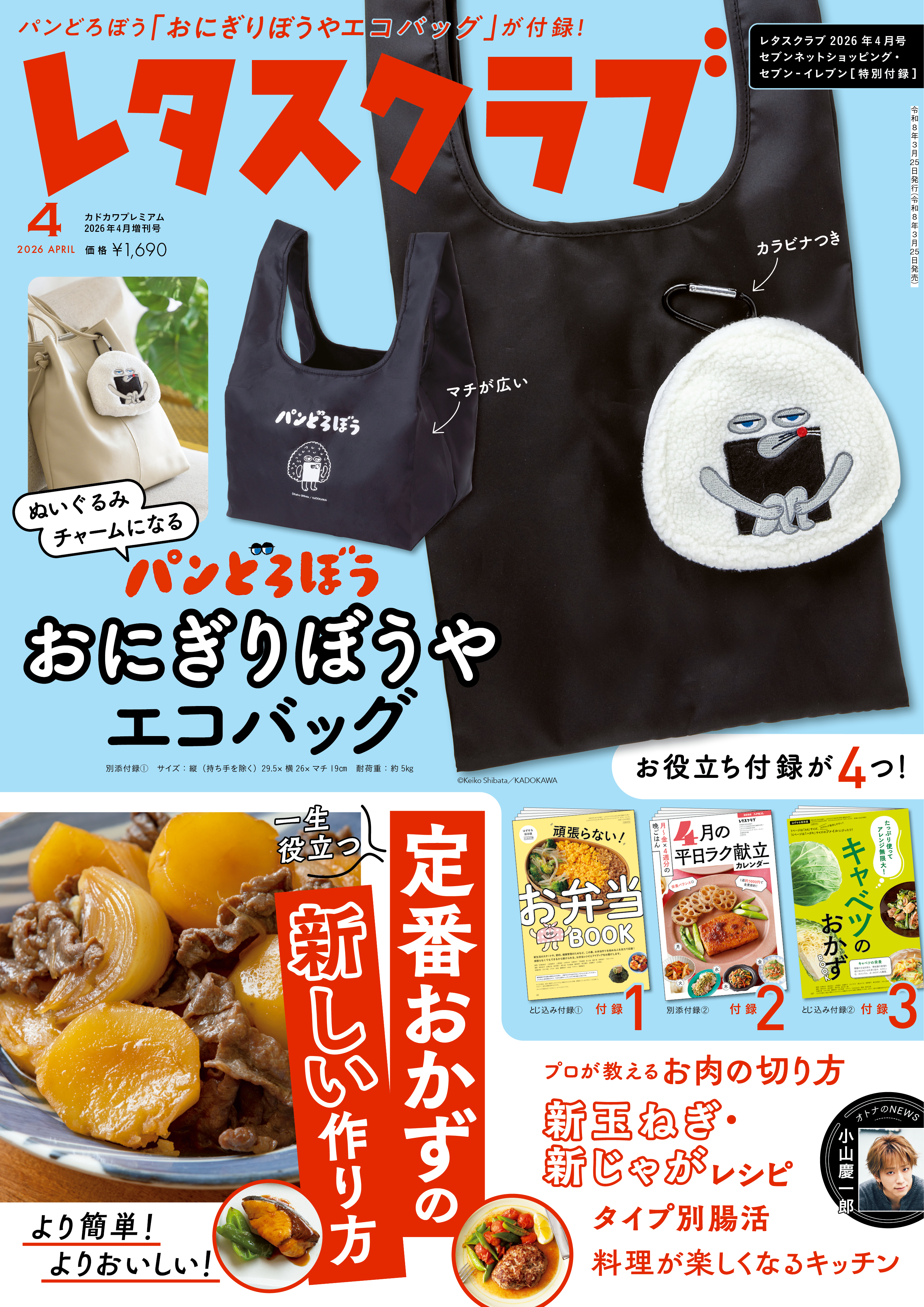 特別付録は「ぬいぐるみチャームになる パンどろぼう おにぎりぼうやエコバッグ」! 『レタスクラブ』2026年4月号セブンネットショッピング・セブン-イレブン特別版が本日発売!