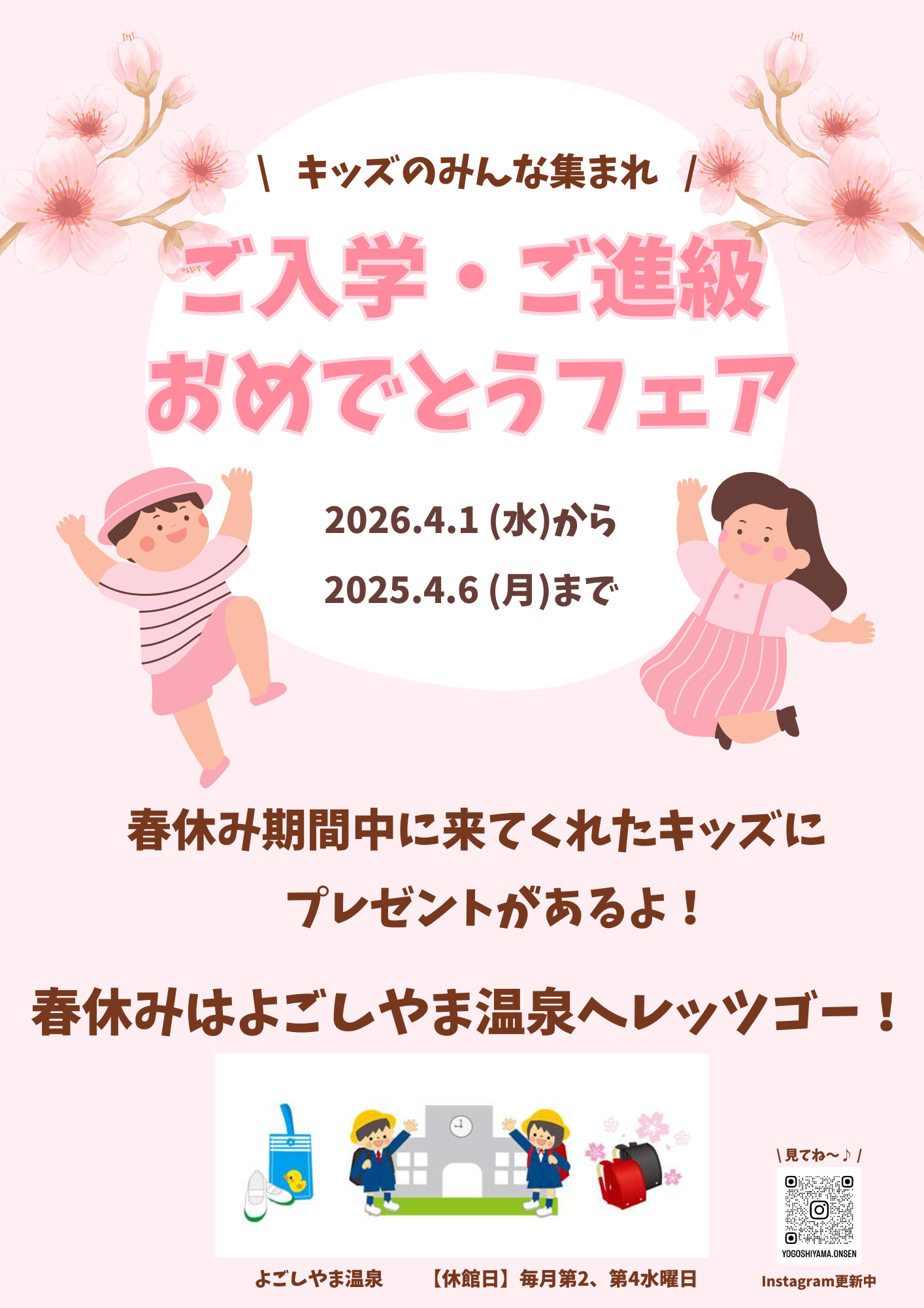 【青森県平内町】温浴施設 平内いきいき健康館よごしやま温泉 ご入学・ご進級おめでとうフェア