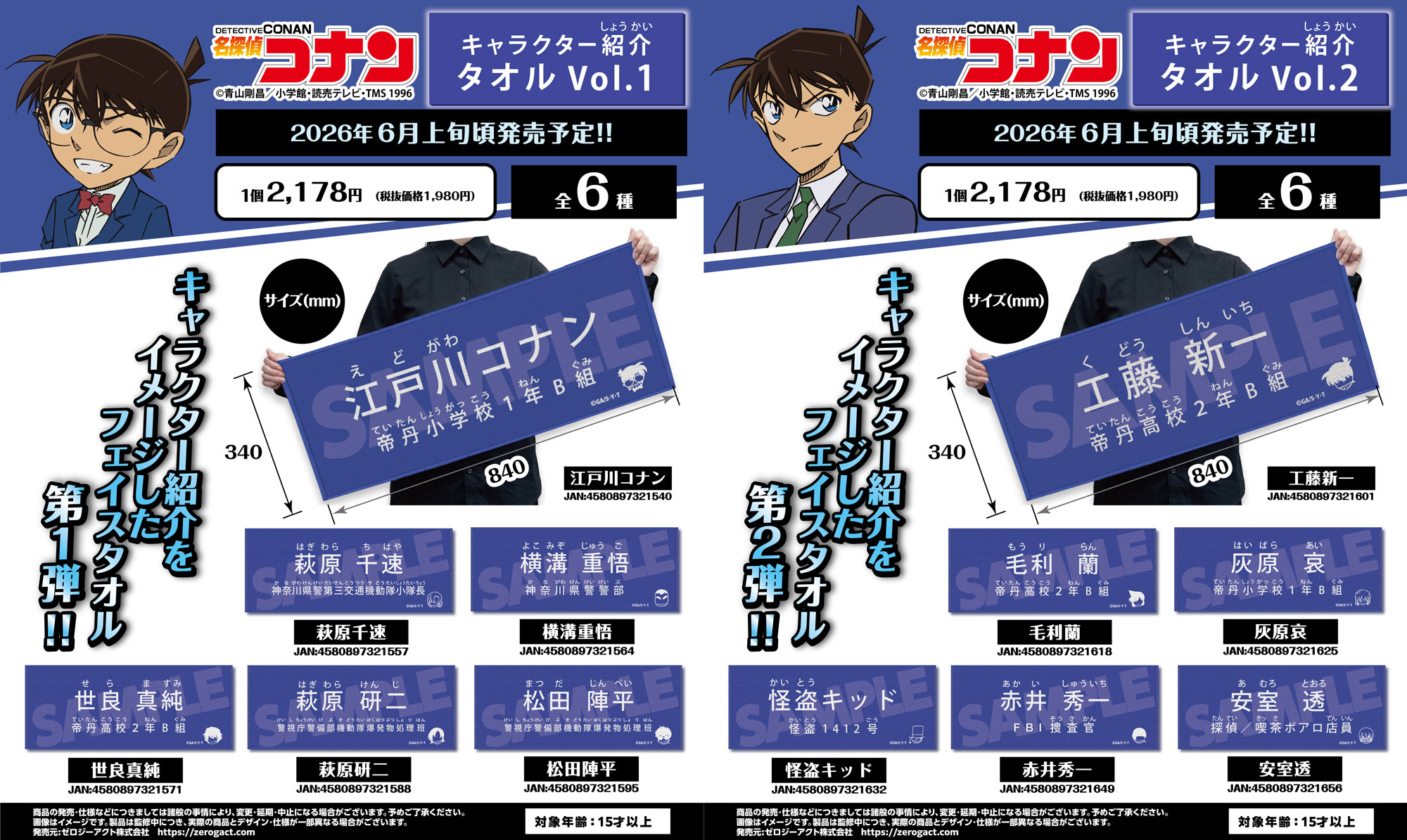 【名探偵コナン】キャラクター紹介タオルVol.1、Vol.2の発売が決定!!本日4/1(水)よりご予約受付を開始!!