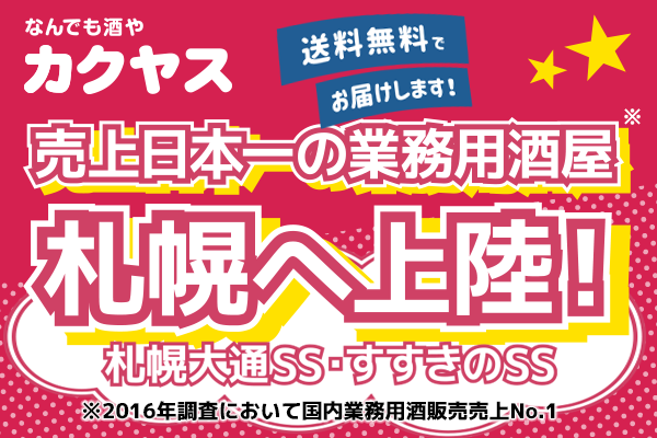 ~カクヤス、札幌エリアへ初進出~「なんでも酒やカクヤス すすきのSS」、「なんでも酒やカクヤス 札幌大通SS」飲食店向け小型出荷倉庫を2拠点同時オープン!