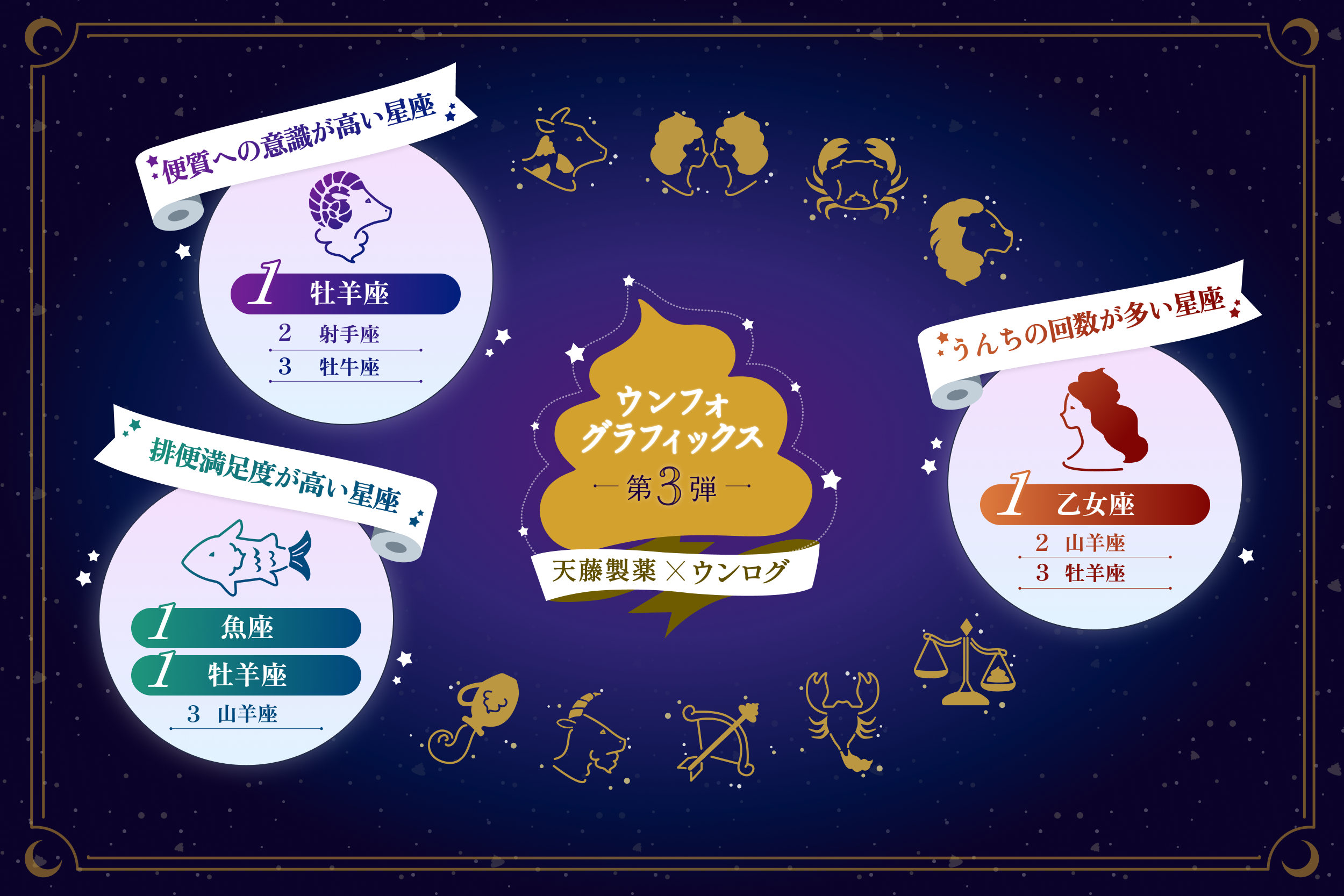 排便満足度NO.1星座が決定!同率で「魚座」と「牡羊座」 「便の質」で充実度が変わる?1,626人の調査で判明したQOLと便の深い相関「便秘、回数、観便etc」12星座別で調査した排便格差を徹底解剖