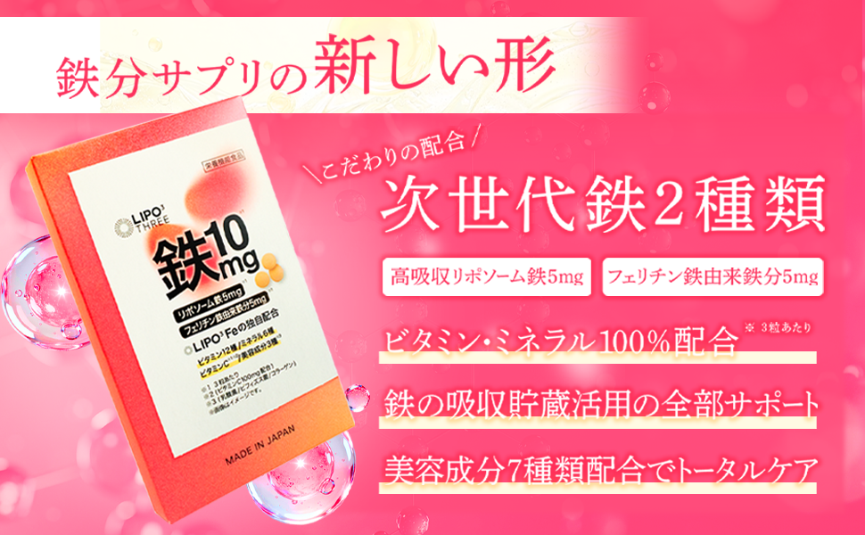 「摂って終わり」の鉄分サプリに終止符を。次世代鉄分サプリ「LIPO³ Fe(リポスリー Fe)」、3月27日よりAmazonにて新発売
